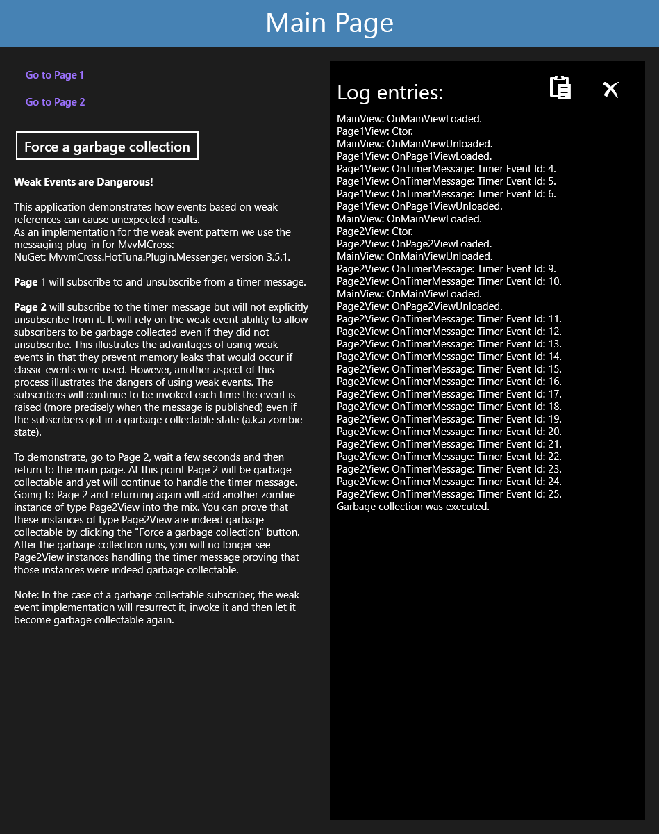 Source code demonstrating the dangers of the weak event managers can be found at: