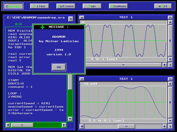 This was part of my bachelor’s degree dissertation. It was a system for signal acquisition, processing and control. It had its own simple language, a compiler and a user interface that was used to visualize the result of the acquisitions or processing. Below is a screenshot of this application. In the left area is a fragment of code and on the right a representations of some electrical signals.